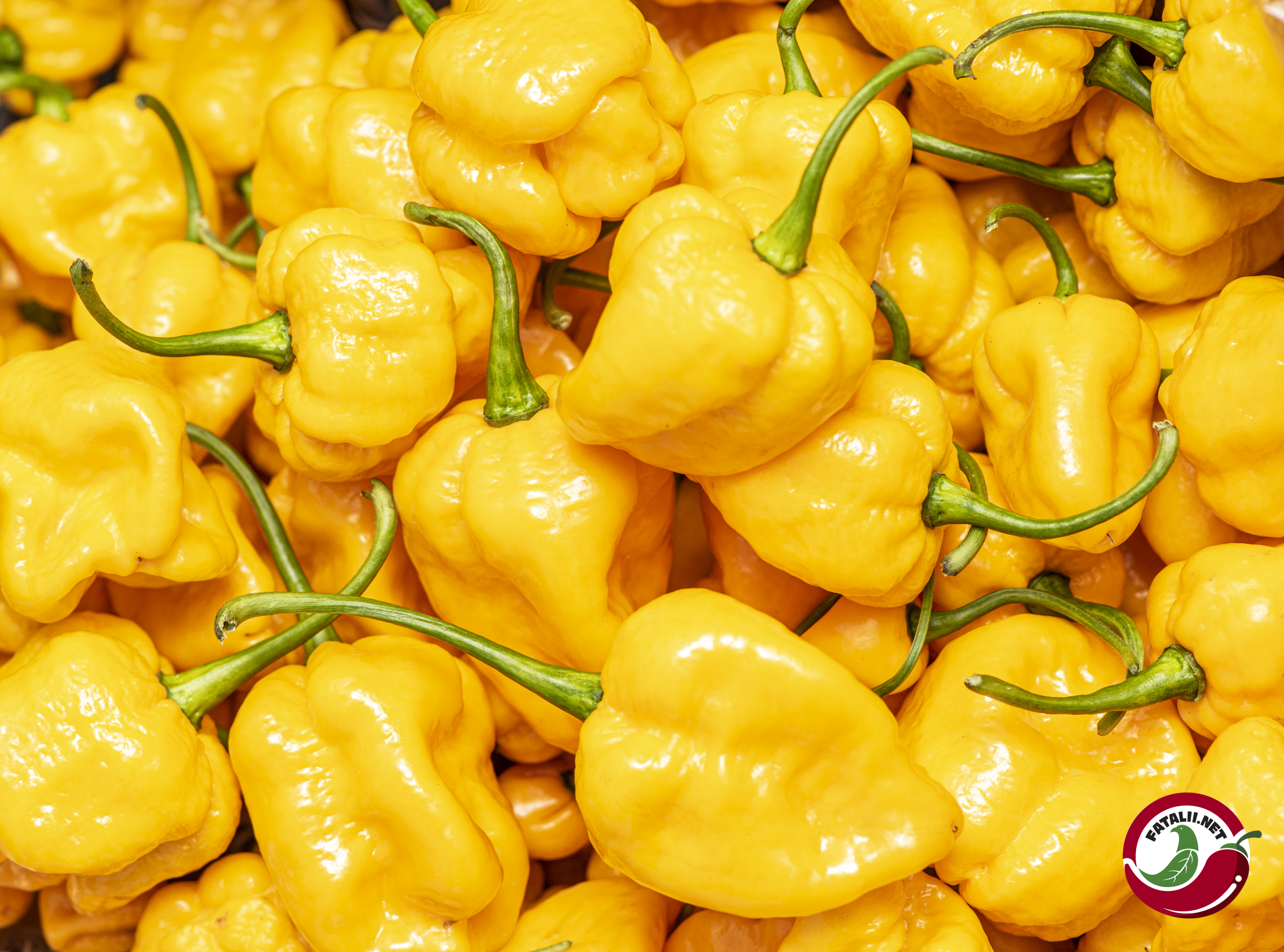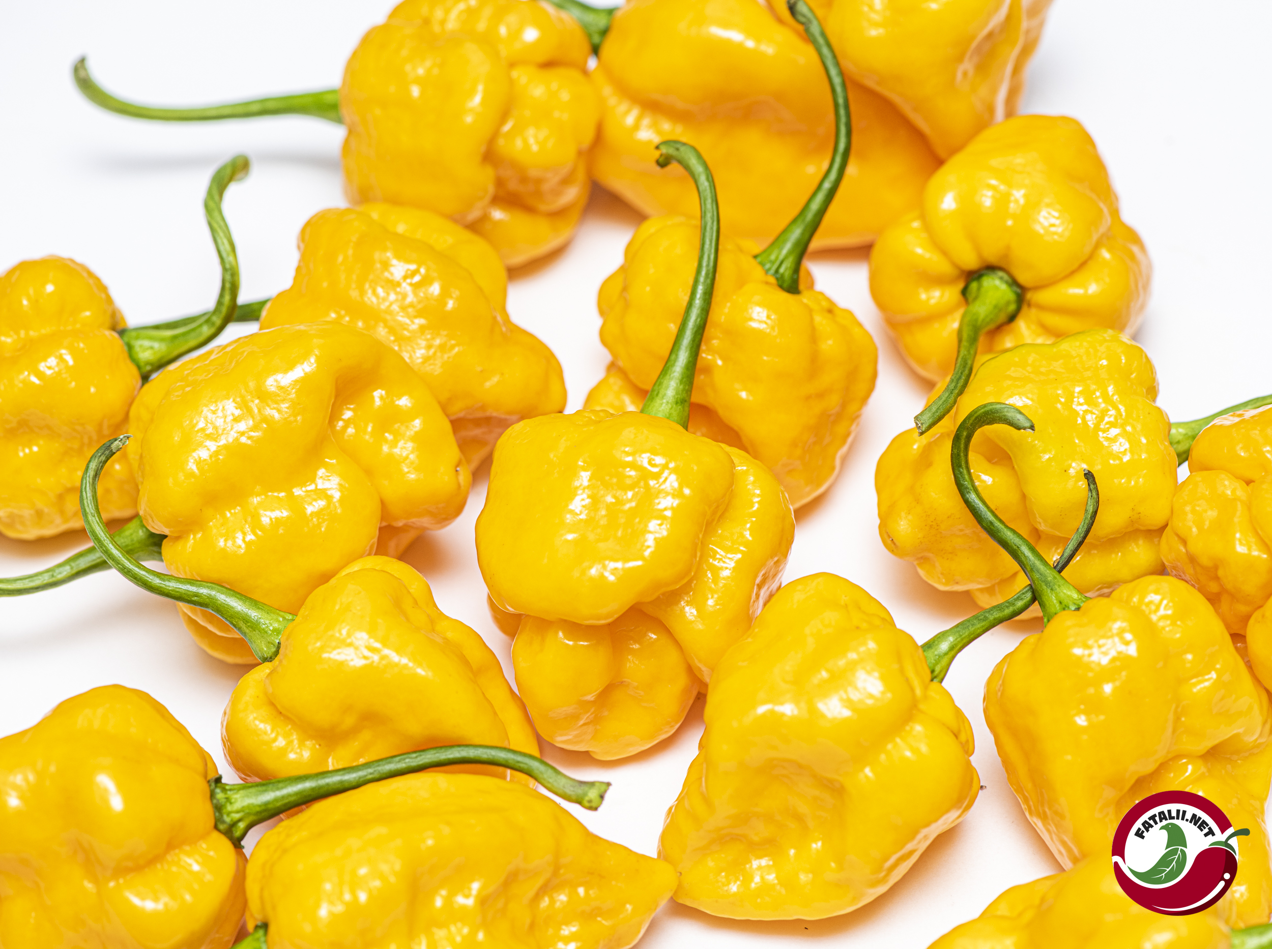 Very large pods which have very interesting look. Some of the pods look like brains. The heat level is very intensive. The color is very bright yellow. The aroma of this variety is excellent with super fruity scent and taste. Many think this one is better than the original 7pod.