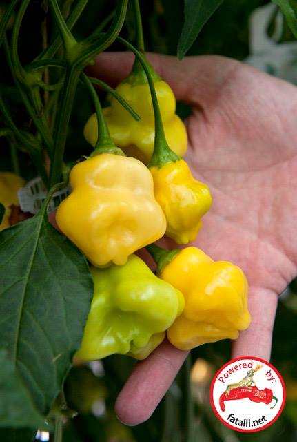 Aji Fantasy is a truly sweet, delicious and tenderly mild from the edges and somewhat hot in the center. Variety created in Finland By Mr. Fatalii. Produces great numbers of nice looking delicious pods – truly candies of the pepper world!