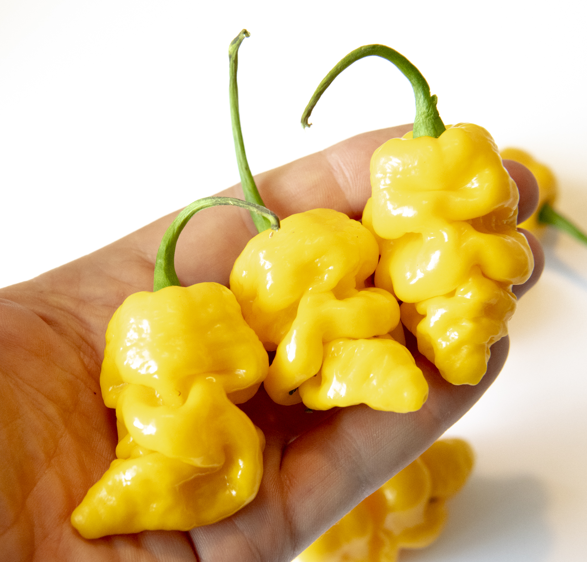 The Borg9 Yellow pepper is a visually stunning variety, known for its vibrant yellow, bumpy pods and extreme heat, reaching up to 1,400,000 Scoville Heat Units from Faddas Pepper. This pepper not only adds a brilliant splash of color to any garden but also offers a unique flavor profile with fruity and citrusy undertones.