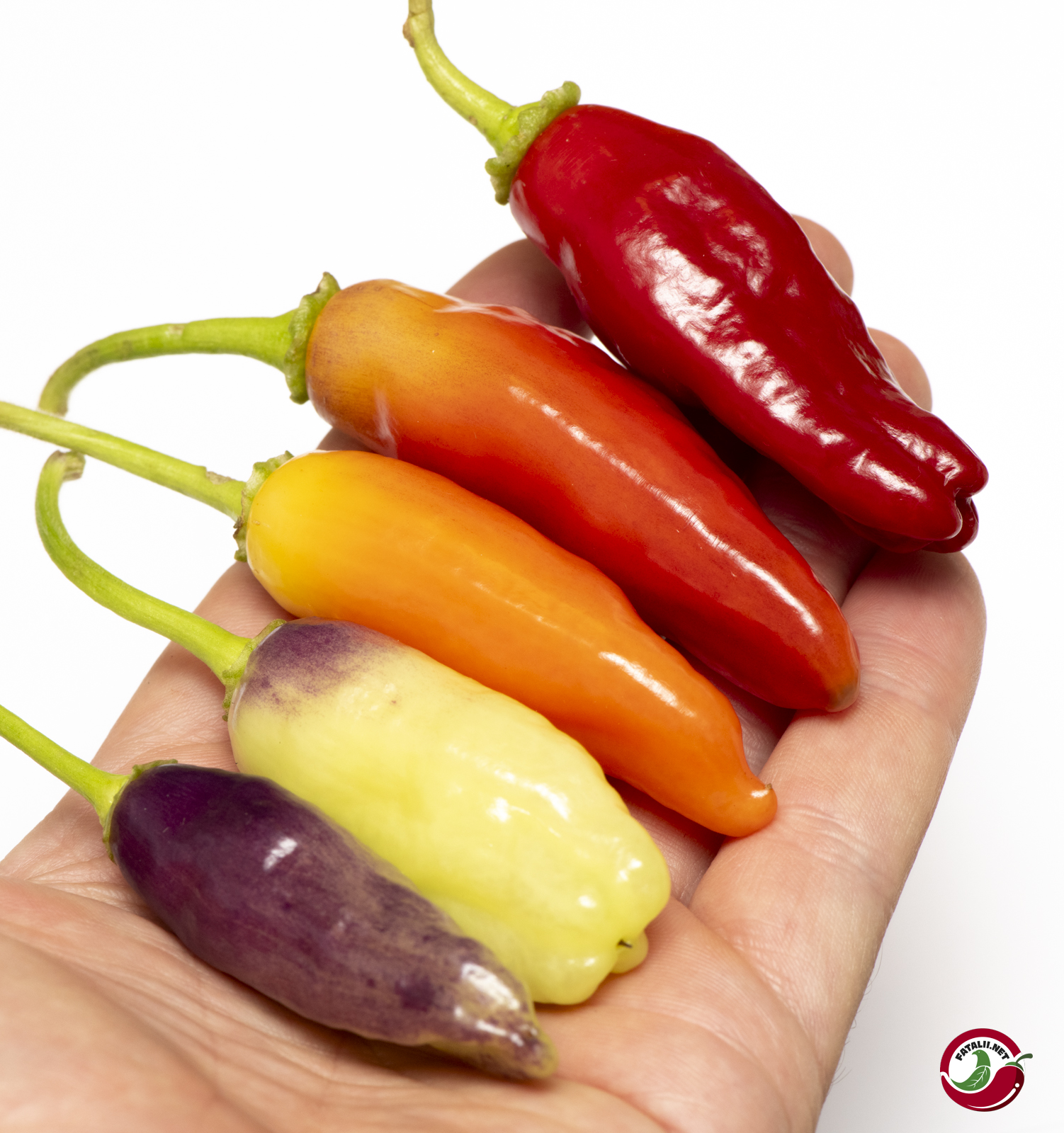 Unlike the typical Capsicum chinense flavor, the taste of this chili has a mild heat, similar to some Aji varieties like Aji Norteno, offering a fresh, fruity twist with just a touch of spice—around heat level 3 or lower on a scale of 0-10. It’s very easy to grow, making it an ideal choice for both beginners and seasoned chileheads.