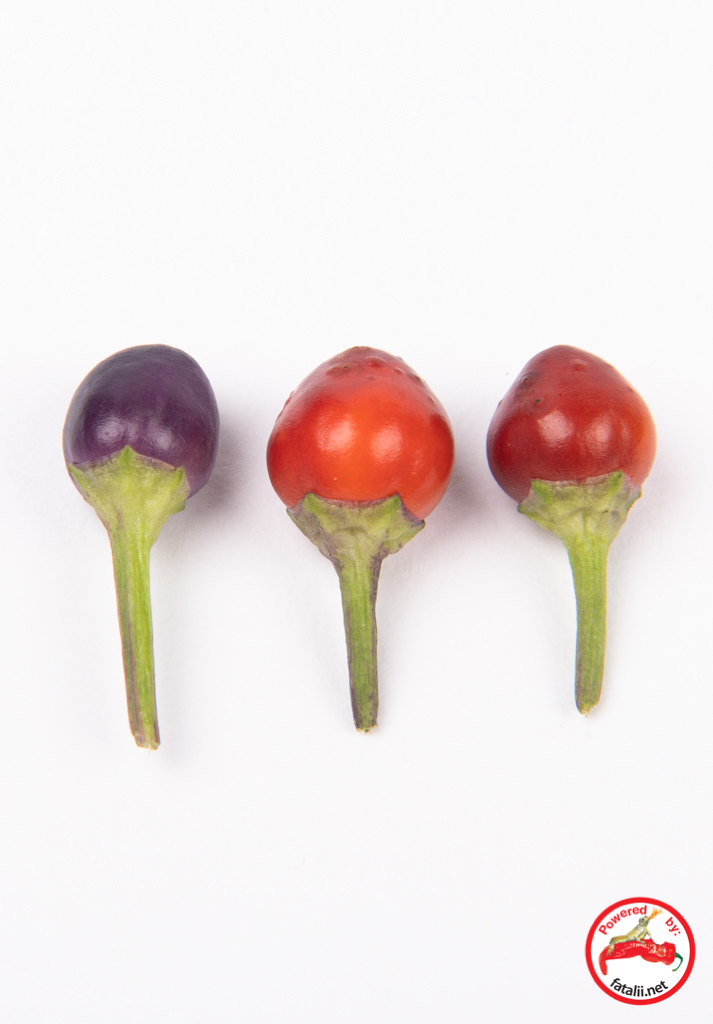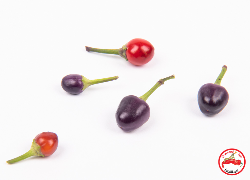 The pods are roundish and one plant can produce a large amount of these pretty pods. Grows very nicely in small pots. Especially pretty as a bonchi plant! Above medium hot.