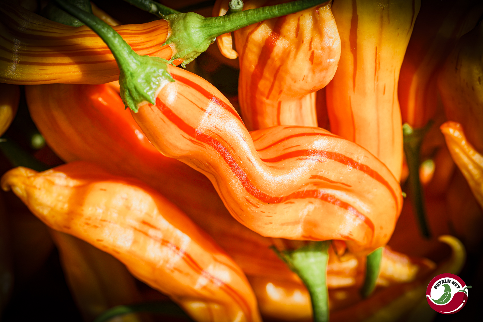Flor Morado Stripey is an extraordinary new variety born from the cross of Sugar Rush Stripey and Aji Flor Morado, delivering a perfect balance of beauty and heat. Its stunning pods display striking peach and red stripes, making it a true visual delight. But it’s not just about looks—this pepper boasts a flavor that’s a touch sweeter than its parent, with a distinct peppery profile and a heat level that surpasses the famous Sugar Rush Stripey.