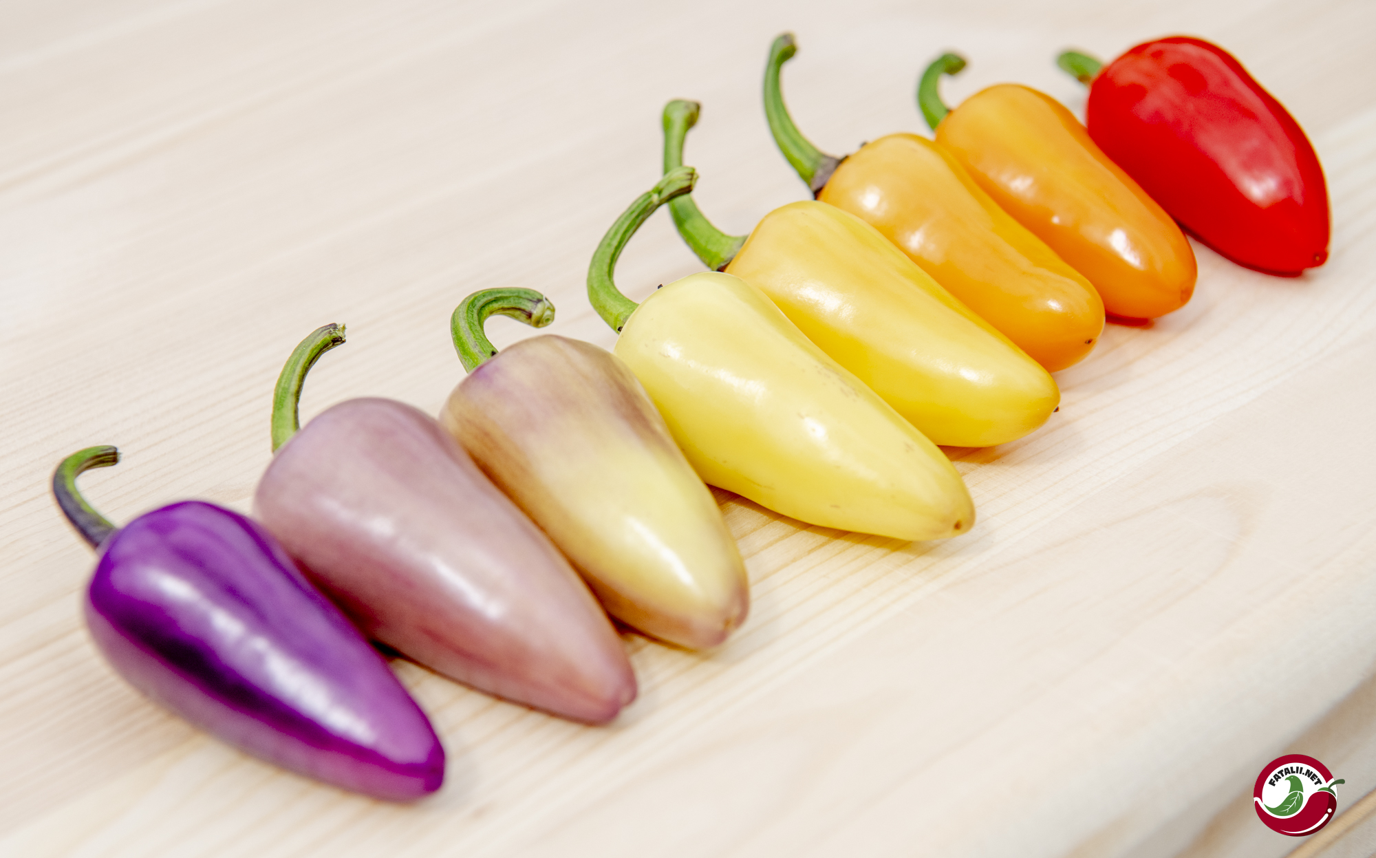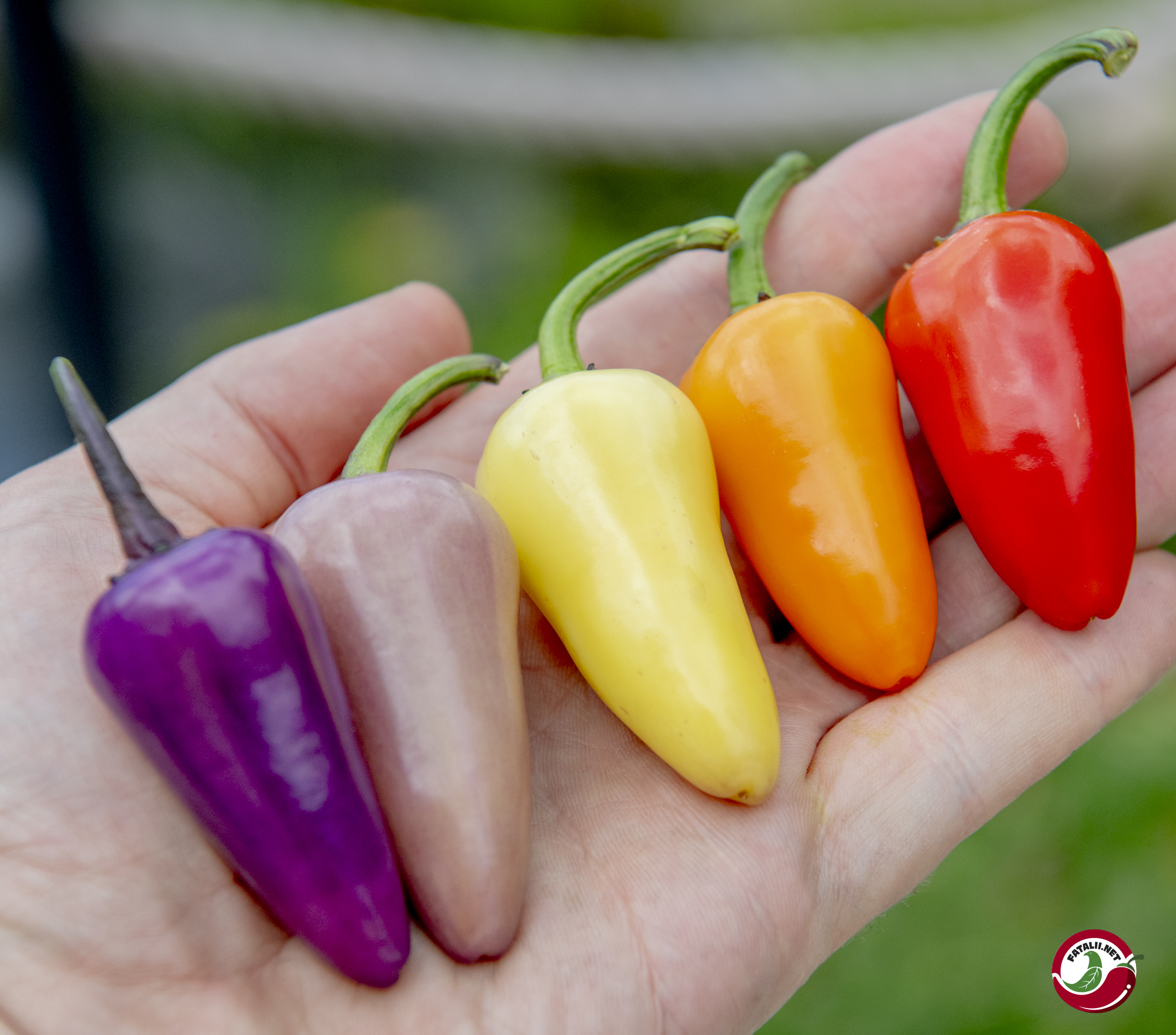 Jalapeño Multicolor is an unforgettable sight in any garden with its stunning array of colors. This ornamental variety begins with deep purple pods that gradually shift through vibrant shades of yellow, orange, and finally rich red as they ripen. Not only are the plants incredibly productive, but they also grow in a compact form, making them perfect for containers or smaller spaces.