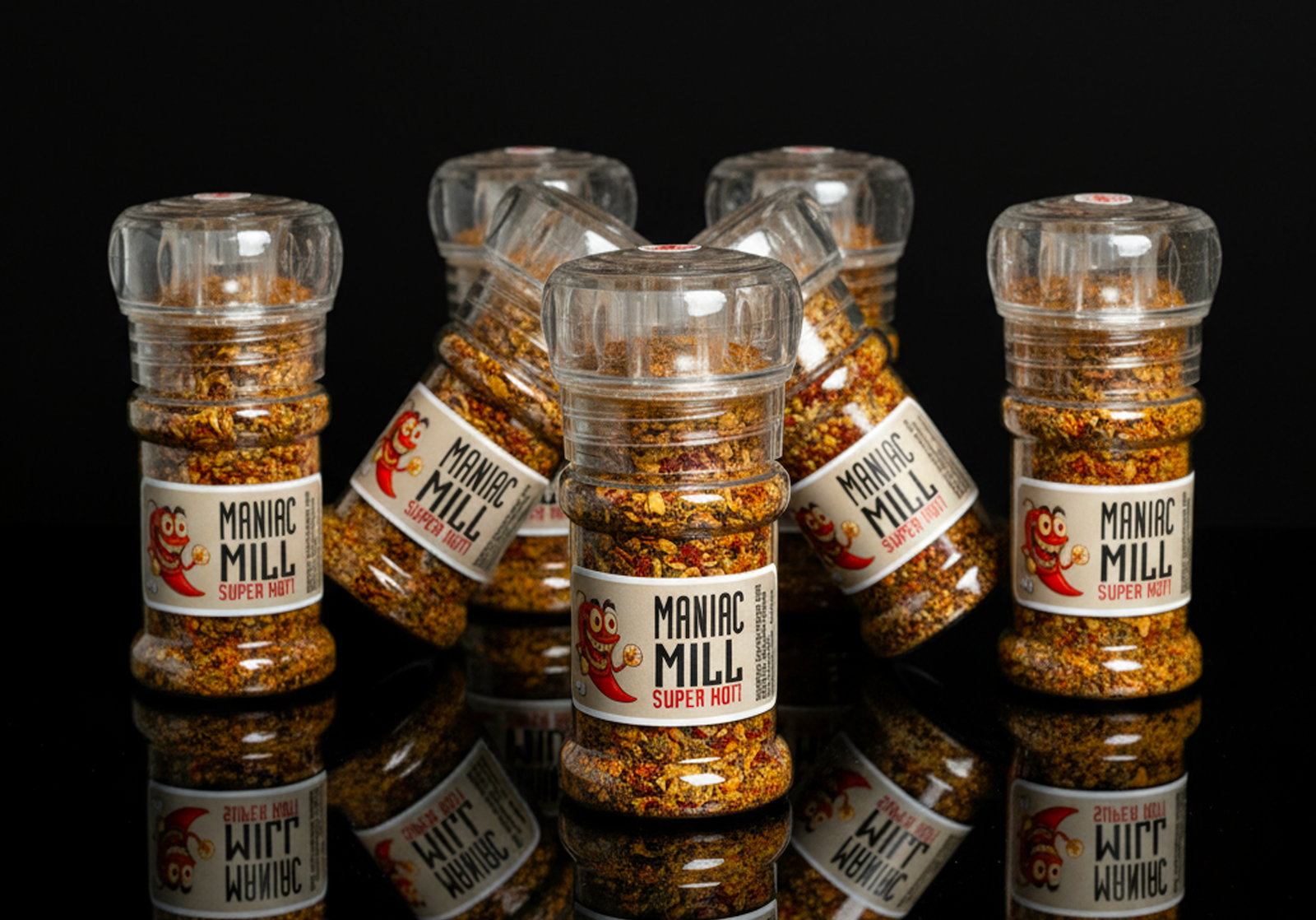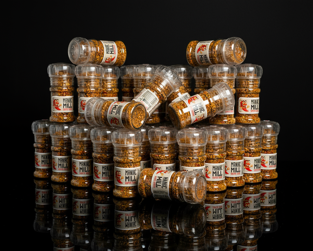 Meet the most dangerously delicious chili blend ever trapped inside a mill! The Maniac Mill isn’t just hot – it’s completely out of its mind. Each twist unleashes an explosion of pure, fruity fire made from carefully handpicked super hot chili varieties, blended for incredible aroma, intense flavor, and a truly maniacal heat level.