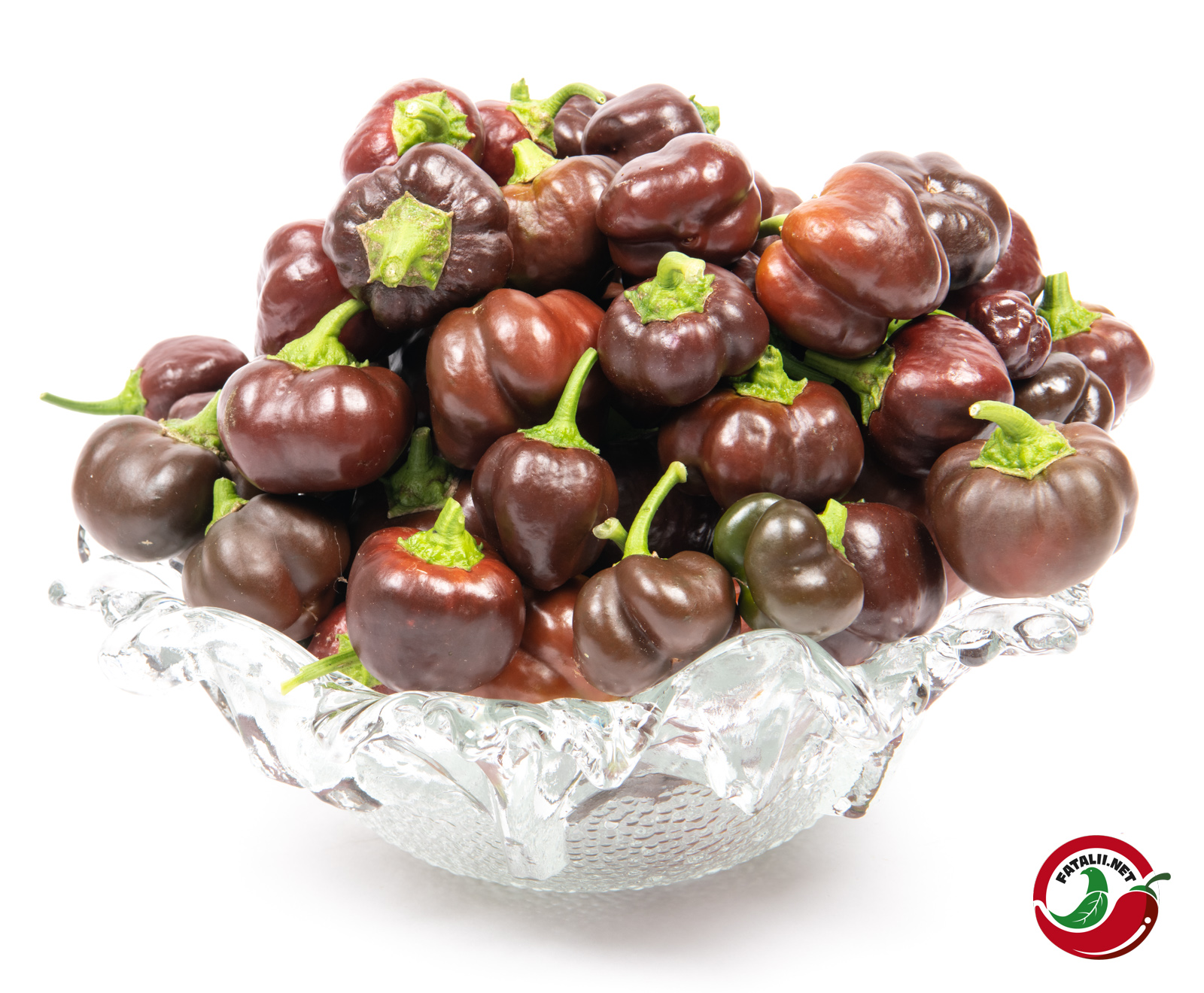 A mini version of the chocolate bell pepper! Very fun plant to grow. These pods are very tasty and sweet and the actual plant is quite compact and bears a lot of pods every time.