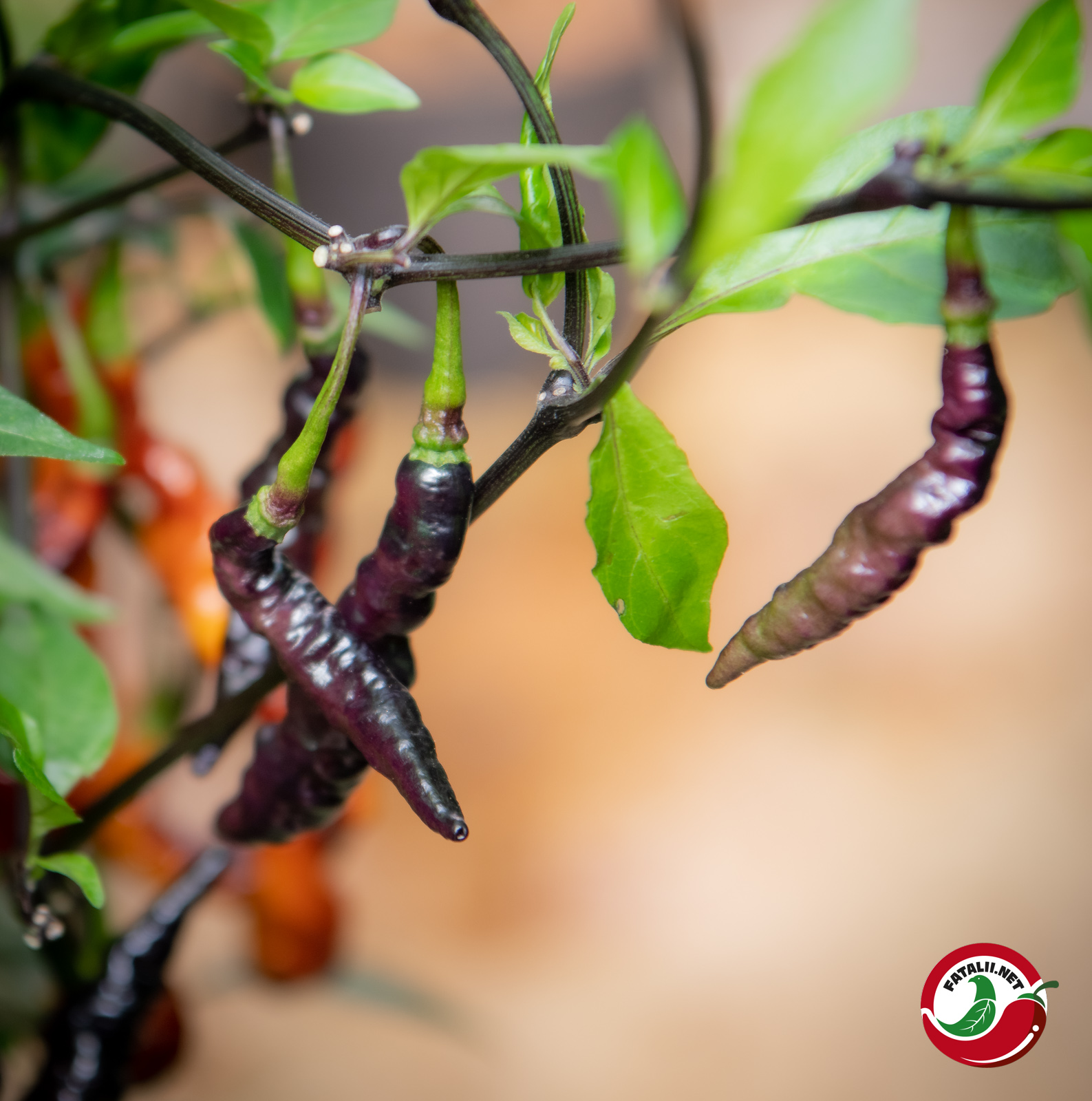 This outstanding plant will be filled with very hot pods which will ripen from olive-green, black, purple, orange-purple-yellow-red.