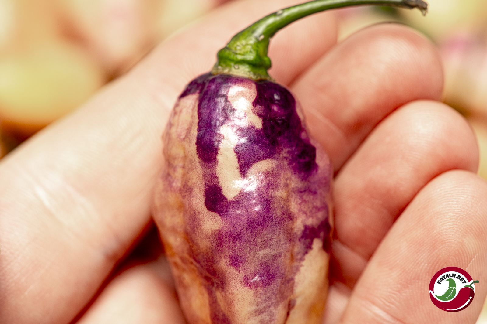 The pepper’s surface is kissed with a dreamy luster, reflecting light in a way that further accentuates its otherworldly appearance. Topped with a vibrant green stem that contrasts beautifully against its mystic hues, this chili is a true masterpiece of nature. Stunnningly pretty plant which produces stellar yield.