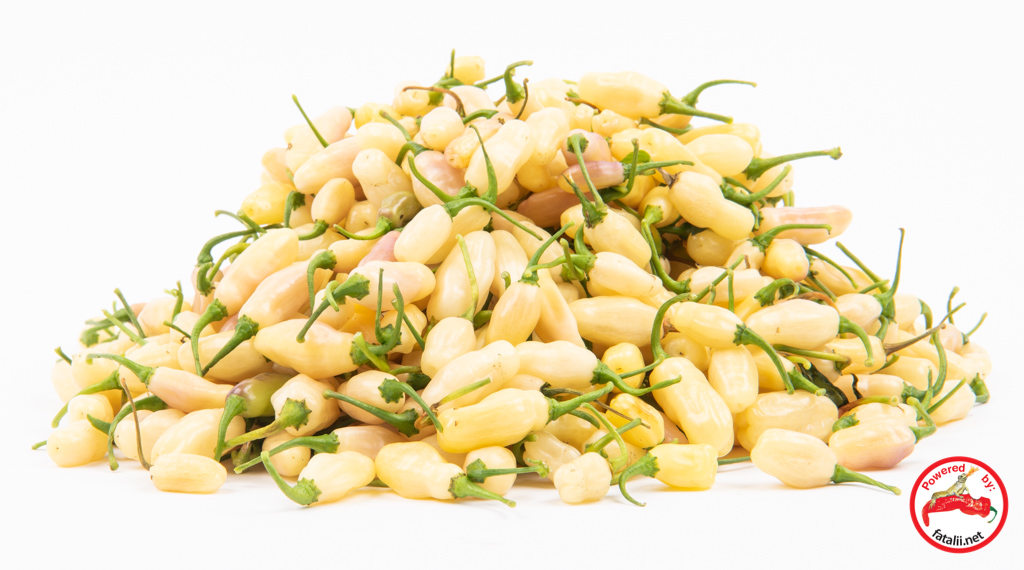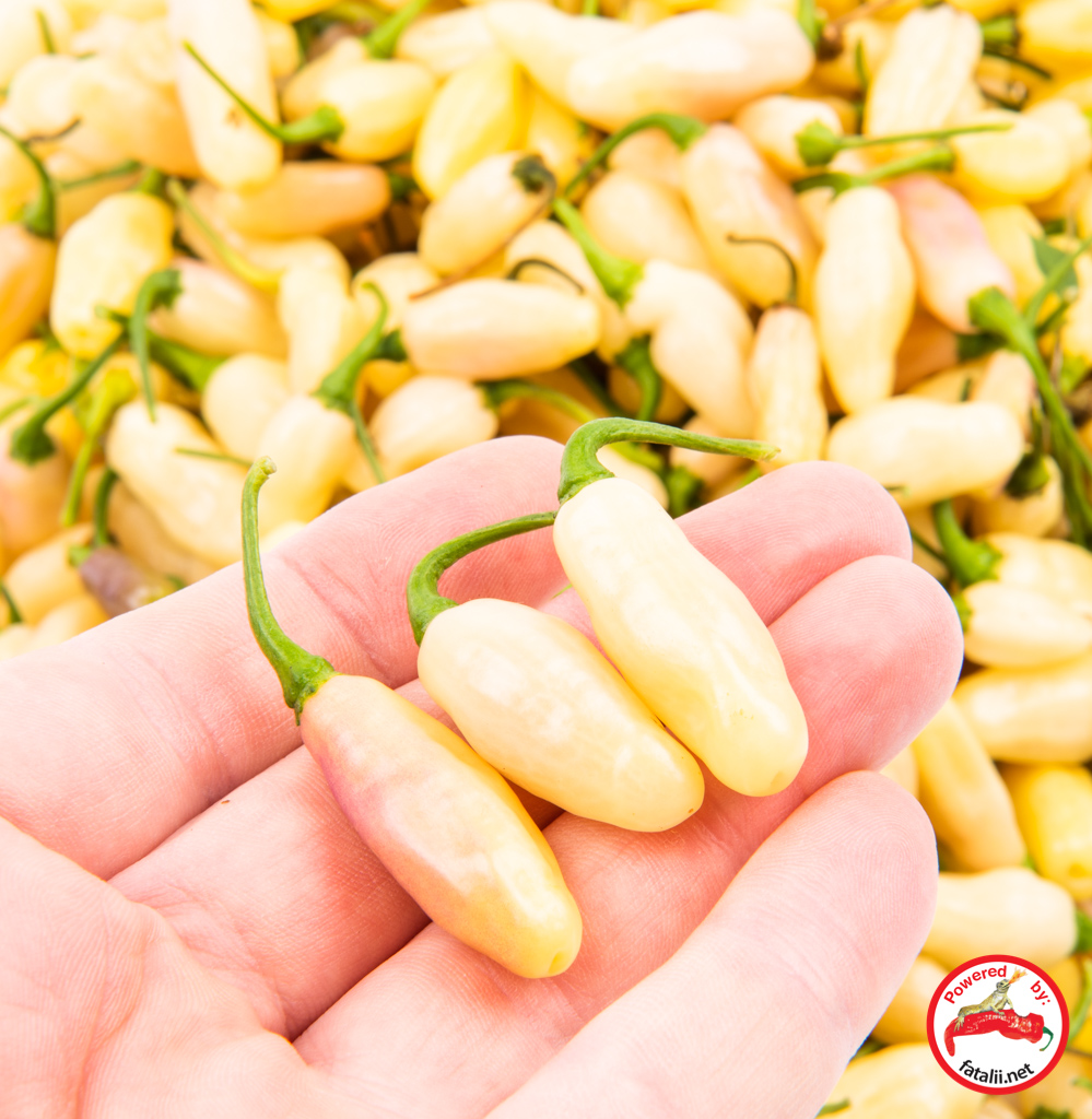 Absolutely lovely, very hot variety which produces just insane amount of pods per plant! I assume it’s not fully stable yet, but the few plants I grew were still almost identical so it’s quite near to be stabile. The pods are very aromatic. Especially great to be eaten as small rings on your pizza or any other food, if you can handle the heat. Makes excellent, and lovely colored chili powder too! Original strain from Faddas pepper.