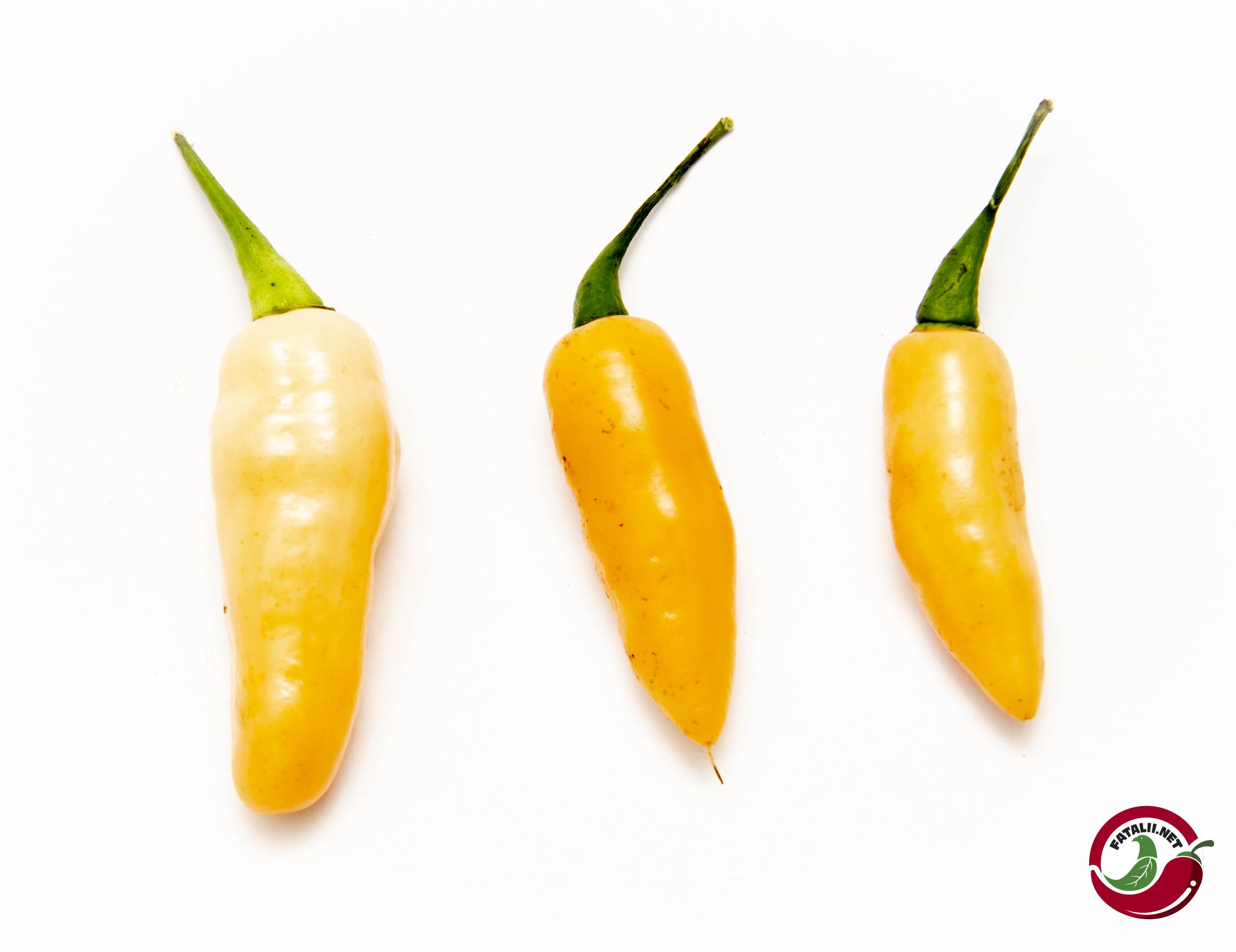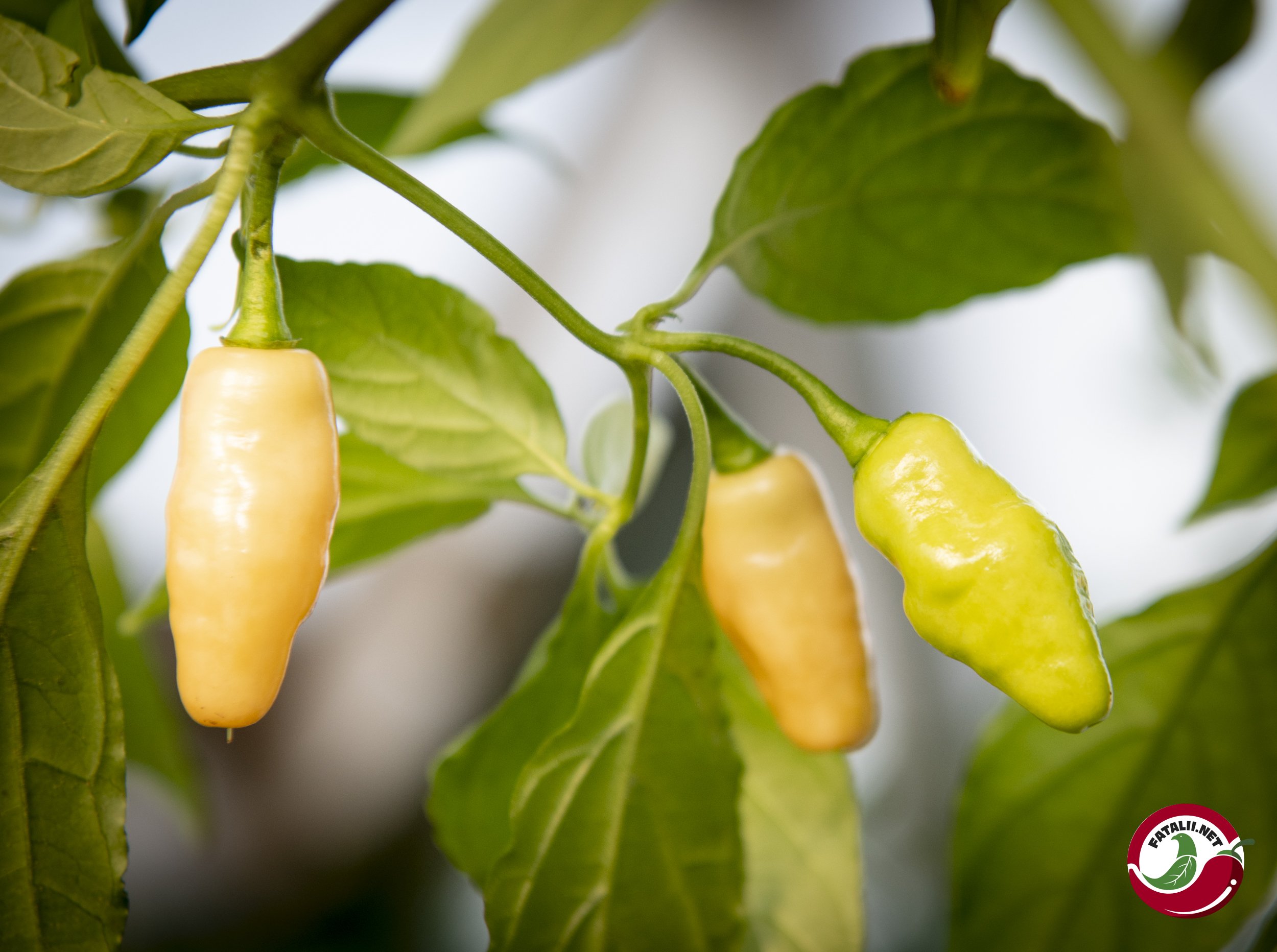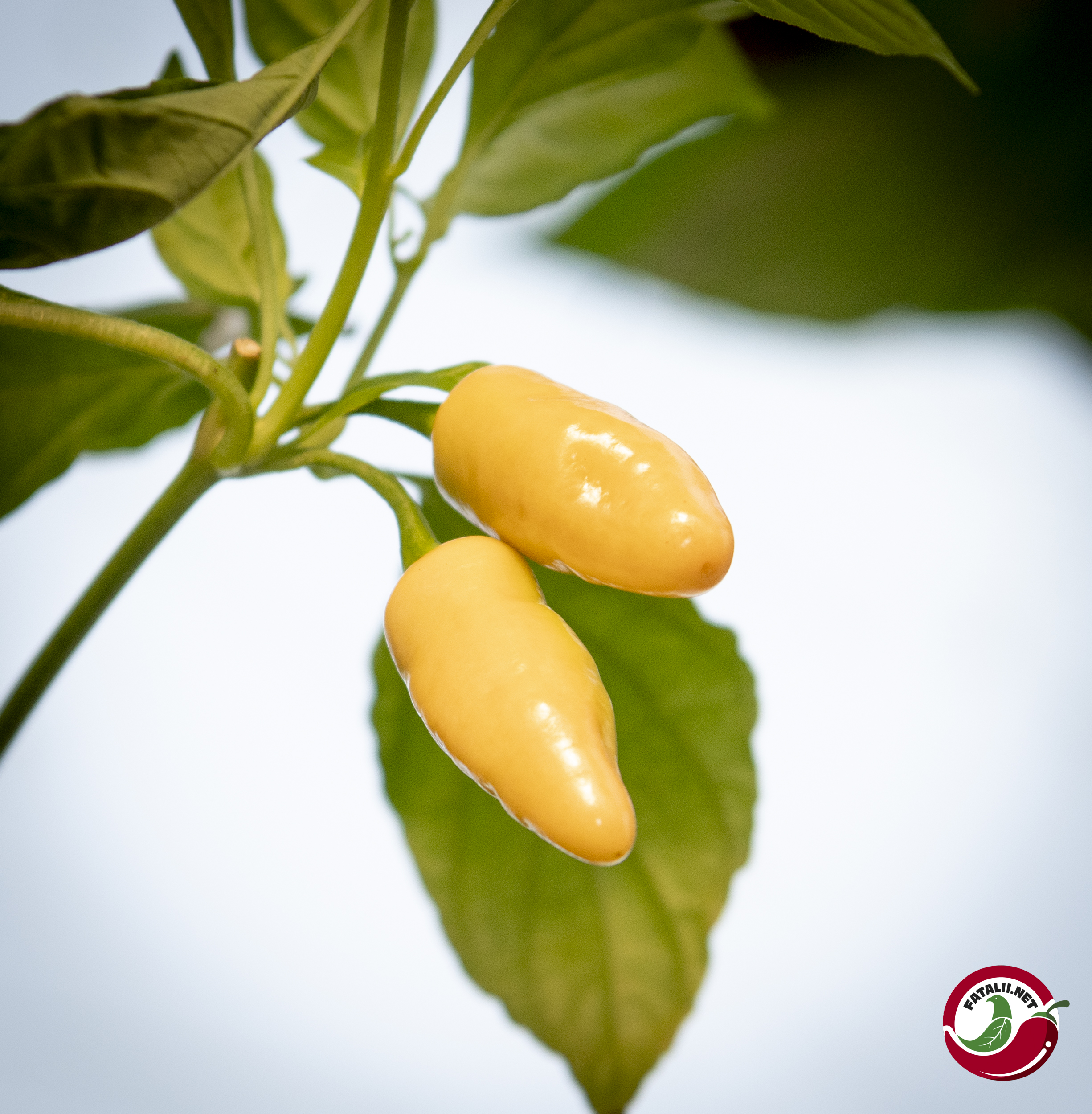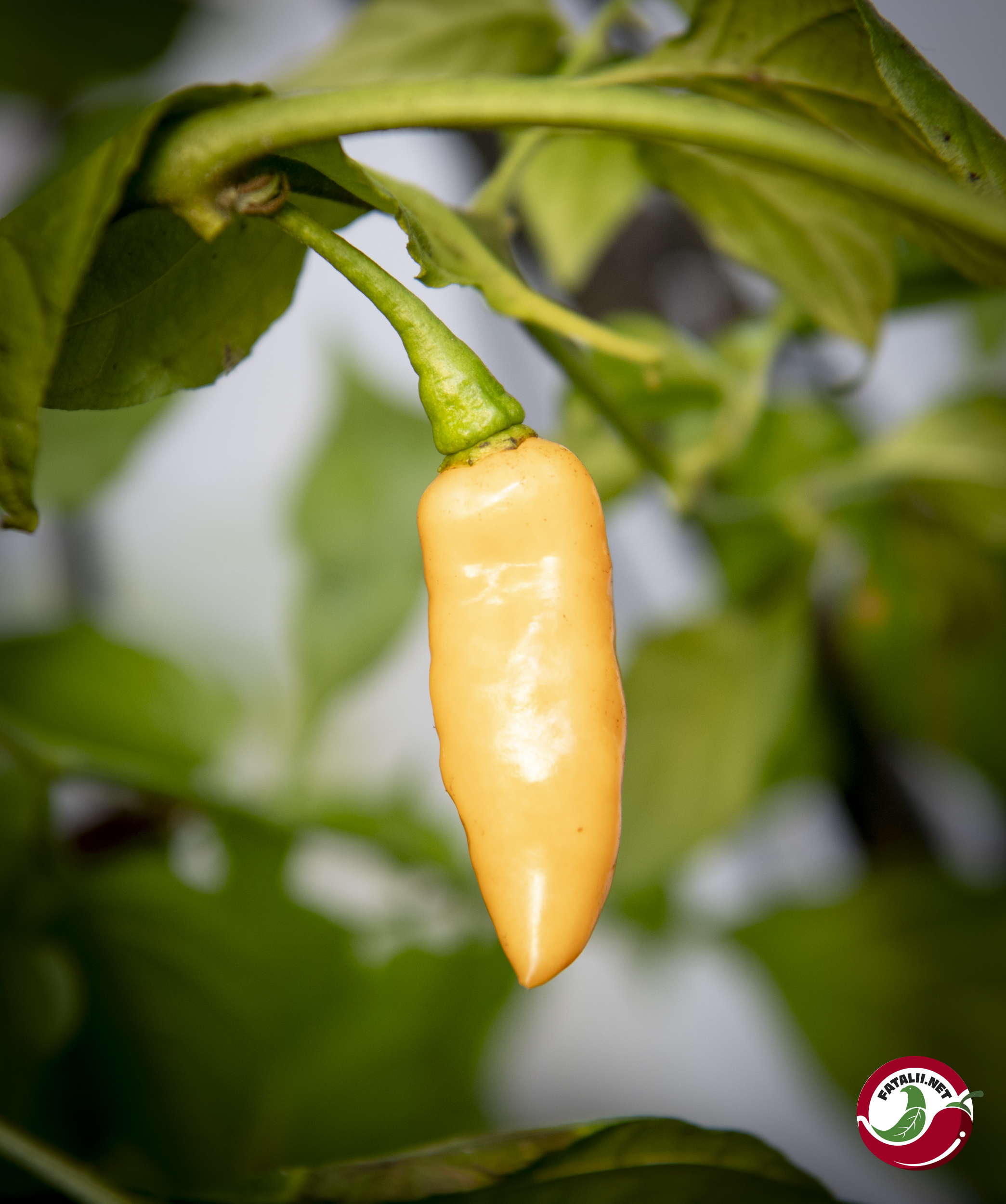This pepper is the result of a cross between a BBG7 MAMP and Pink Tiger, a creative endeavor by Enrico Lai from Mojo Peppers in Italy. It’s not just its heat that captivates but also its visual appeal, making it a dual-purpose choice for culinary and ornamental use. Not yet fully stable variety. The Peach Tiger Tooth chili is a testament to the innovative spirit of pepper breeding, offering a unique taste and aesthetic experience for chili enthusiasts.