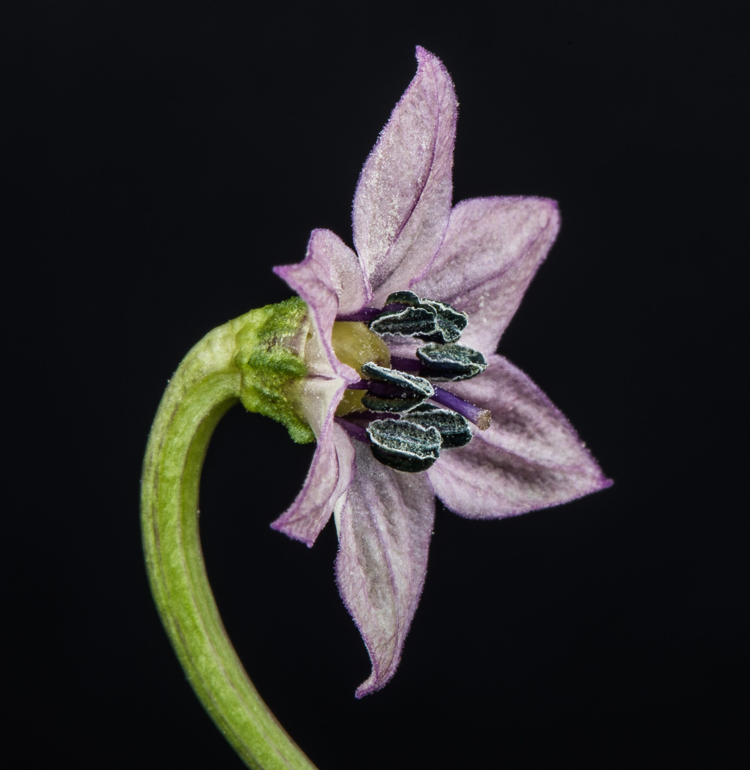 What sets this variety apart even further are its remarkable flowers. The blooms are a rare and stunning purple color, a unique trait among Capsicum chinenses, adding an extra layer of beauty to the plant. These distinctive flowers enhance the already breathtaking visual display of the plant, which features a spectrum of purple pods, some transitioning through shades of orange to red.