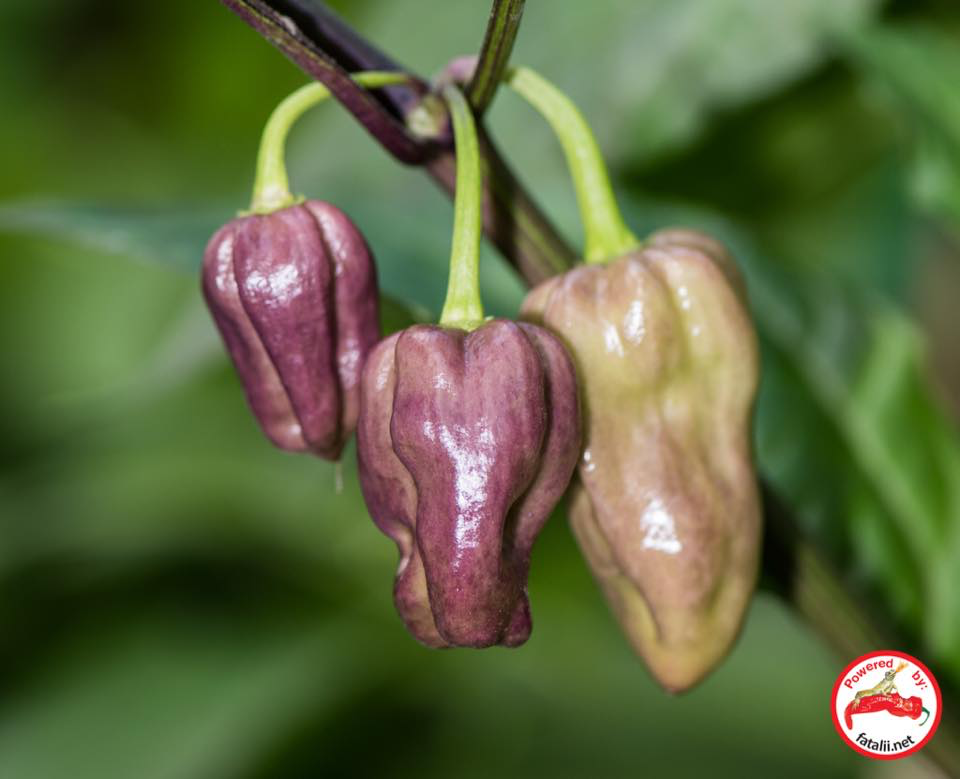 The Purple Bhut Jolokia stands as a marvel in the realm of superhot chili peppers, not just for its incredible heat and flavor but also for its unique aesthetic appeal. This variety distinguishes itself with a captivating color transformation, where the pods evolve from a vivid green to a deep, striking purple, and finally to a rich, fiery red as they ripen. It’s a prolific producer, ensuring a generous yield of deliciously ripe pods.