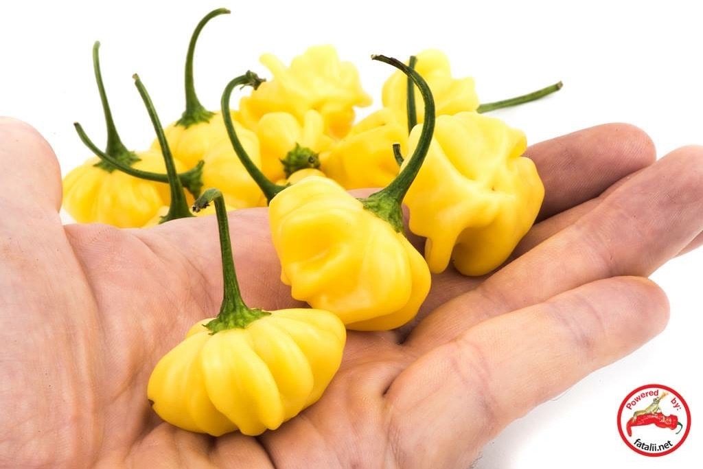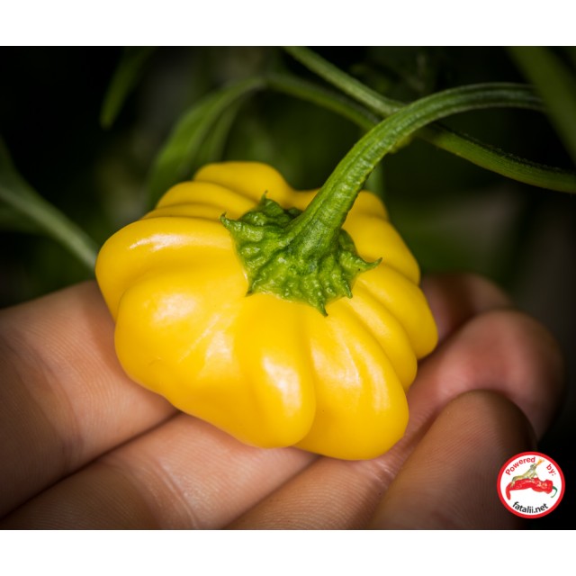 The Starfish Yellow chili is a rather rare and striking variety from Brazil, known for its unique, star-shaped pods and vibrant yellow color. This chili offers a deliciously sweet, apple-like flavor along the edges, while the center brings a surprising punch of heat, creating a delightful contrast in each bite. Its distinctive shape and color make it an eye-catching addition to any garden or culinary dish.