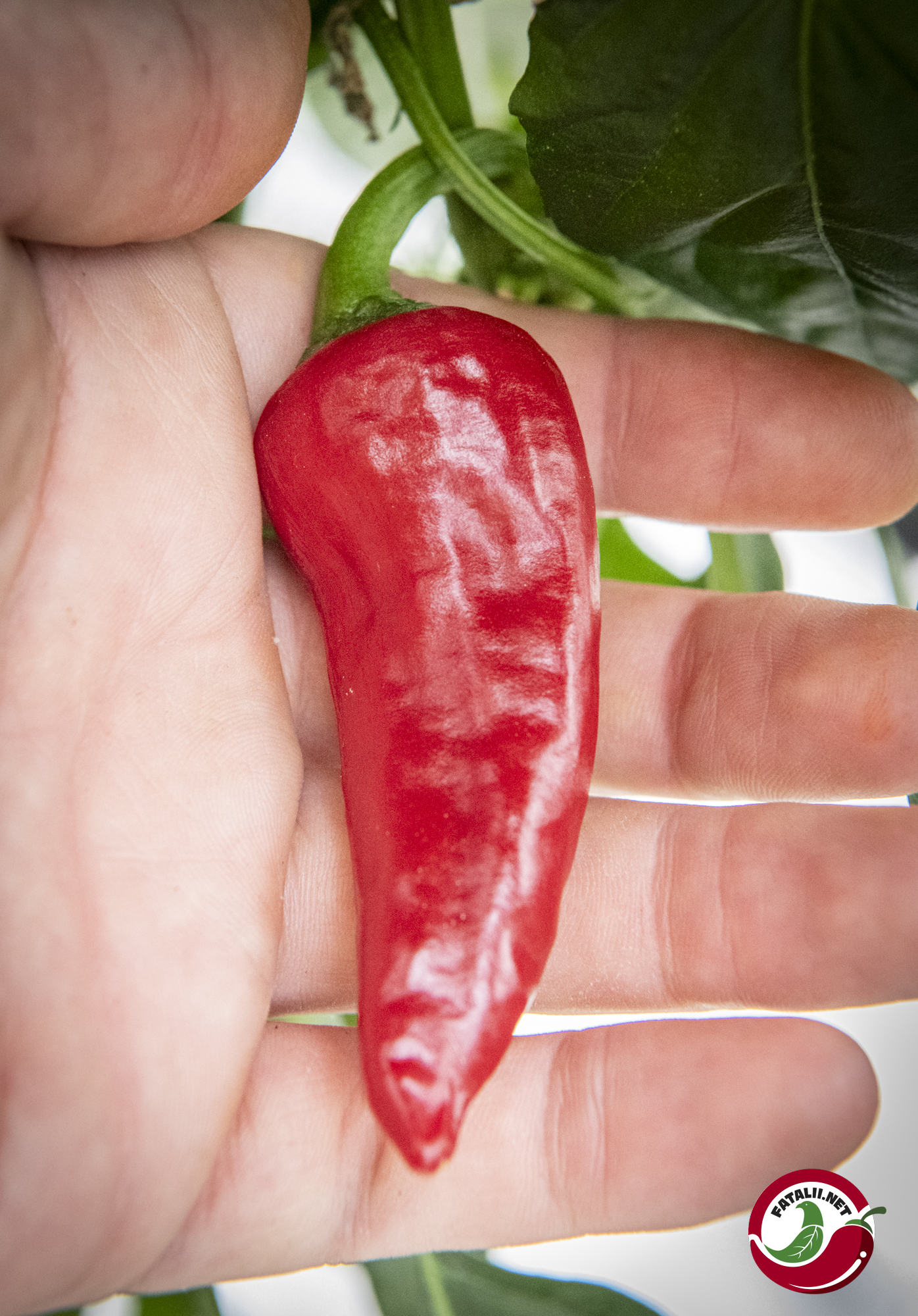 The Syrian Haskorea chili pepper is a rare and distinctive variety from the Mediterranean region of Syria. Known for its balanced medium heat, it offers a satisfying punch that’s hotter than a jalapeño but not overwhelming. The peppers are slender, about 3-4 inches long, and turn a vibrant red when ripe. They have a slightly thick flesh with a crunchy texture, delivering a complex flavor profile that combines smoky notes with a subtle sweetness.
