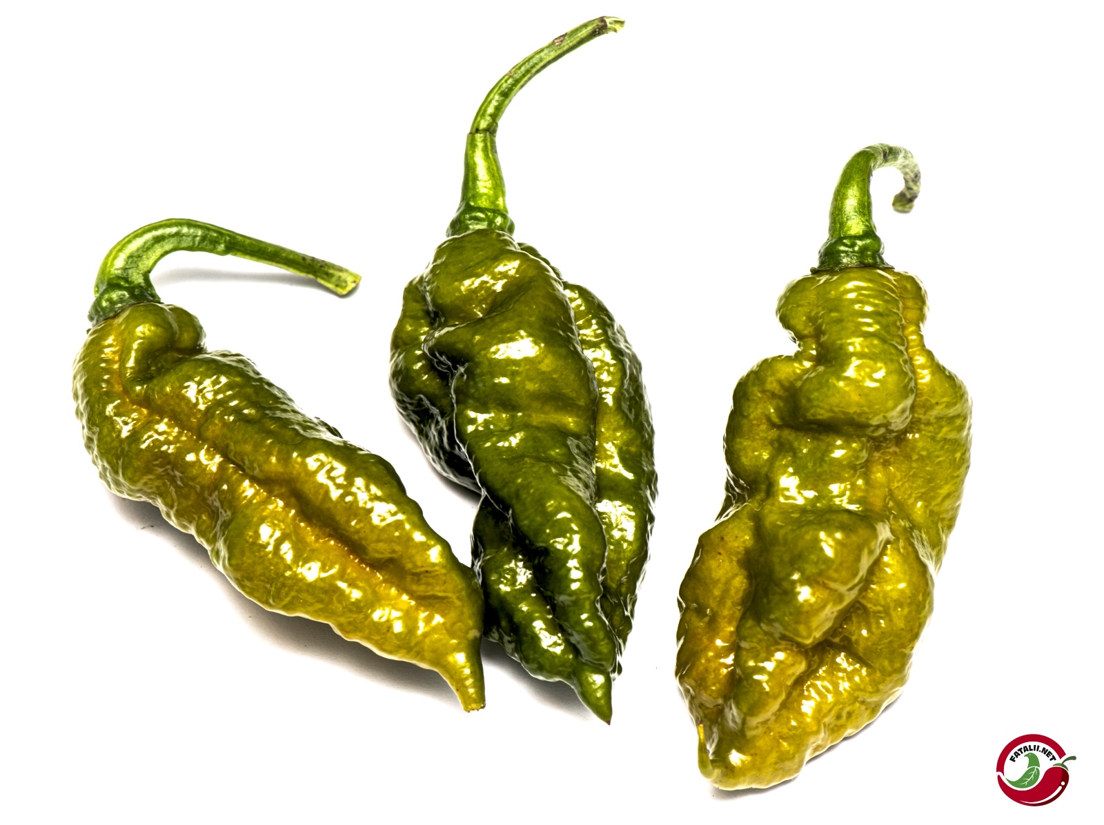 T-Rex Green is an extraordinary superhot Capsicum chinense variety, delivering an intense heat level that ranks among the hottest you’ll experience. Its striking, wrinkled green pods are not only visually impressive but also pack a bold, earthy flavor that makes it a standout in sauces, salsas, and spicy dishes. These vigorous plants are highly productive, offering plenty of fiery pods that can be harvested earlier as well for a fresh, sharp kick or allowed to ripen for a sweeter edge. A must-have for true heat seekers and chili enthusiasts looking to push their limits!