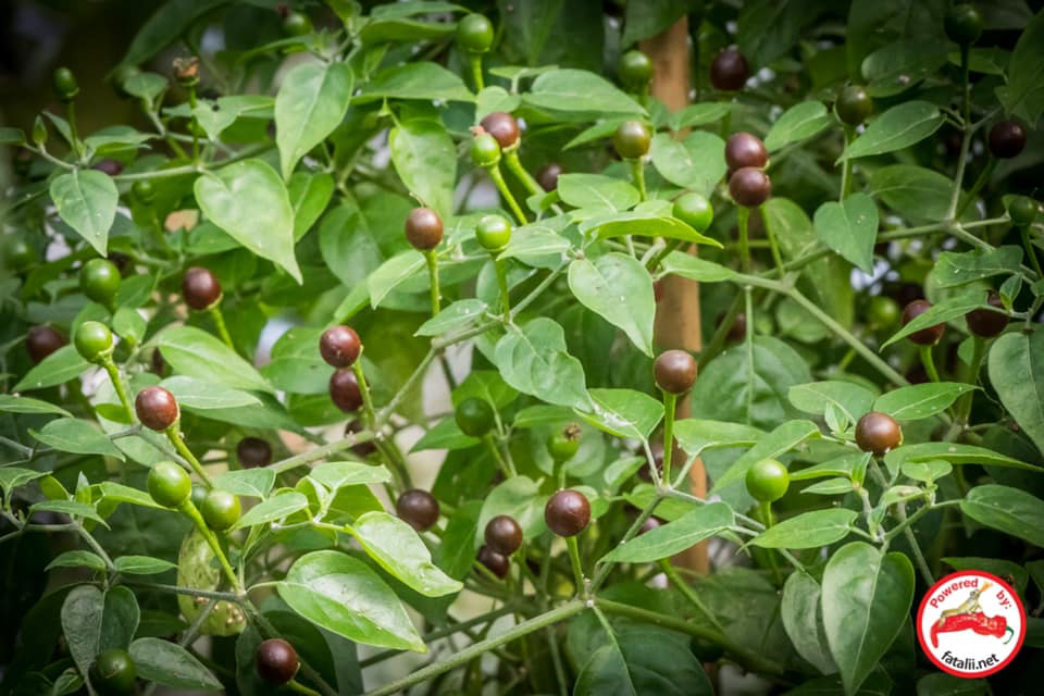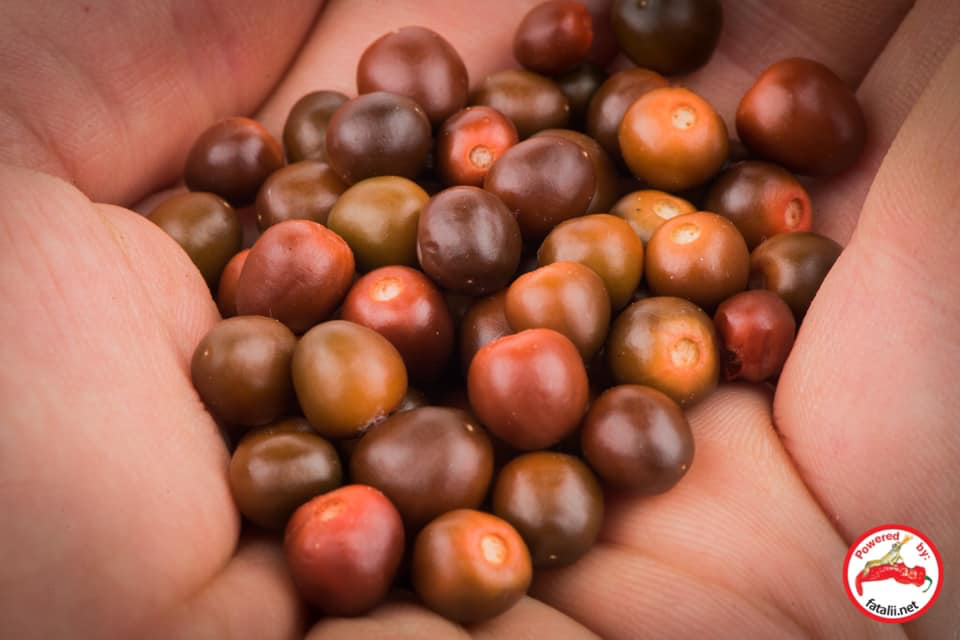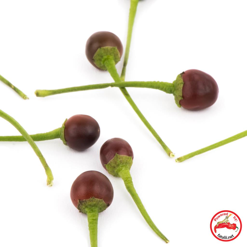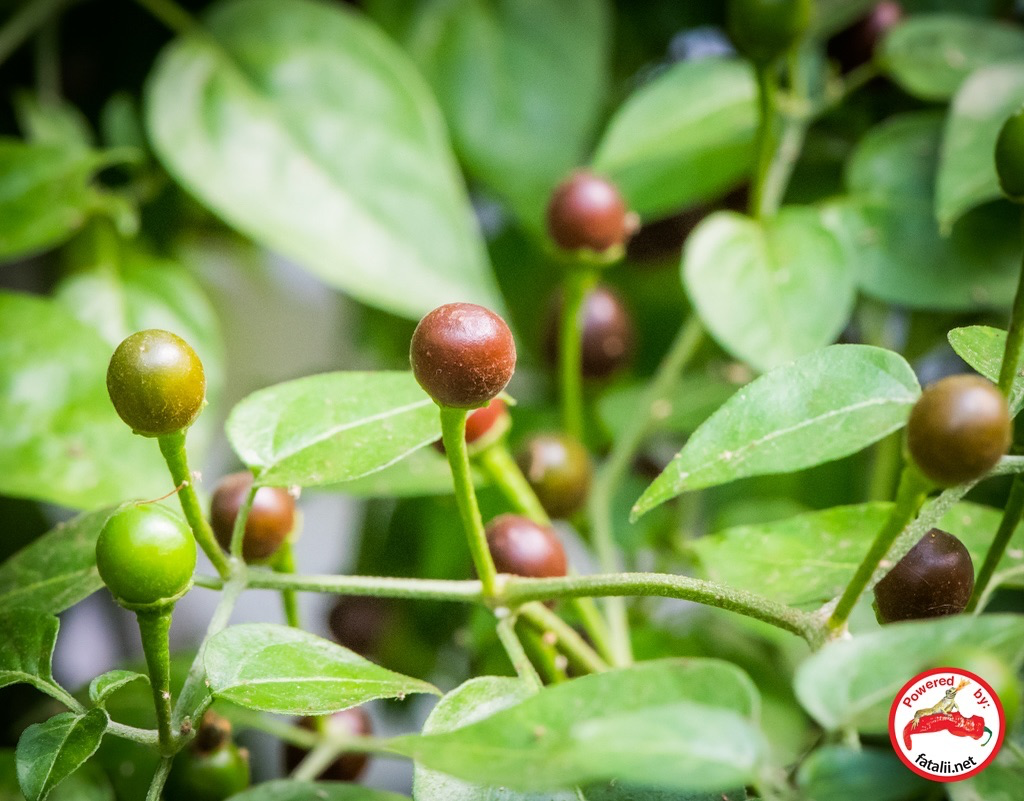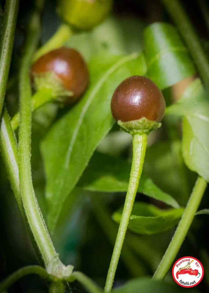 Very different Tepin variety which is quite far from all other Tepins as the mature color is beautiful coffee brown instead of the typical red color. The taste and heat level are very intense. Definitely will boost your cooking! This plant bears a huge amount of small round pods. The plants seems to enjoy growing almost anywhere. A great indoor plant too and surely ideal to grow as a bonchi too.