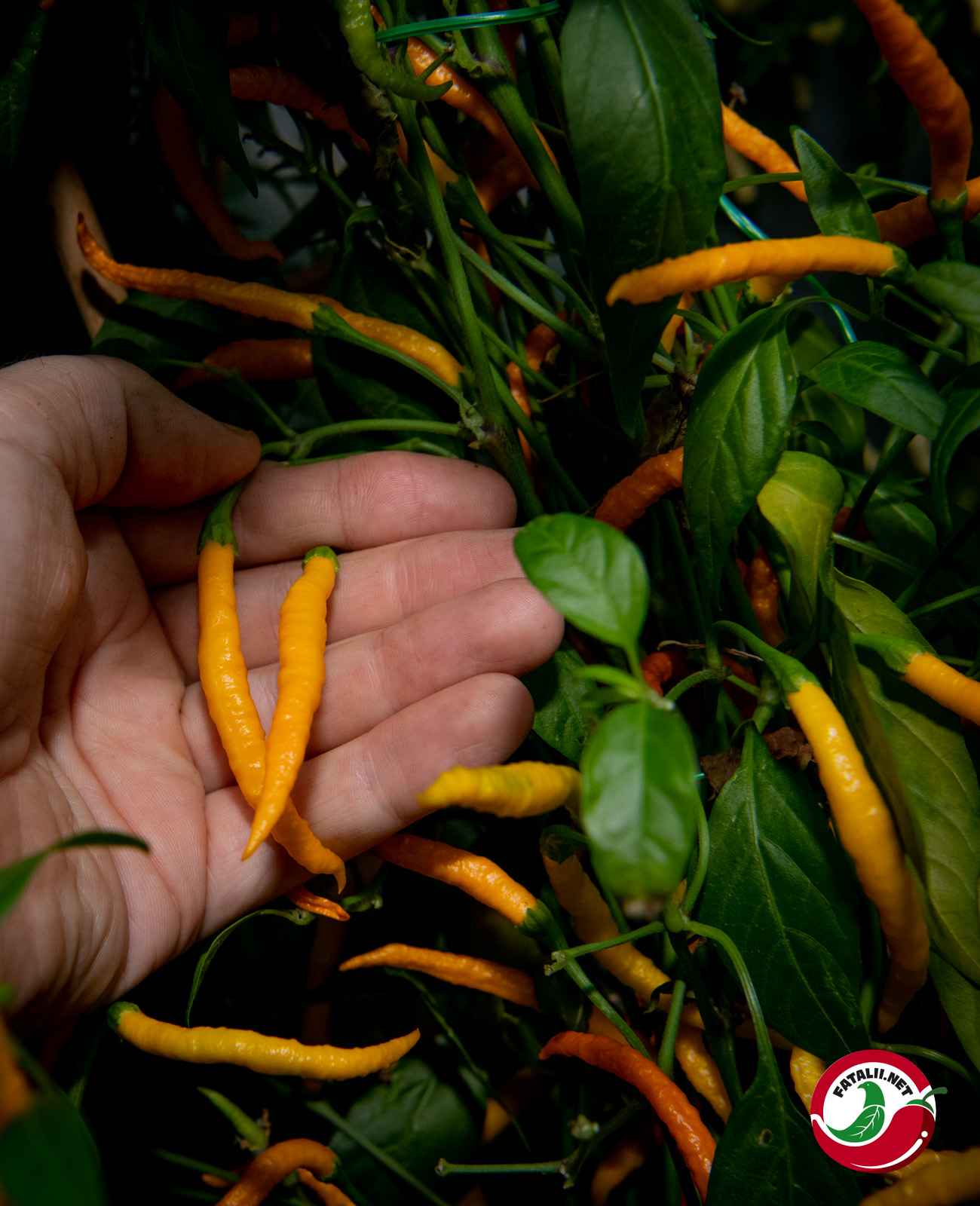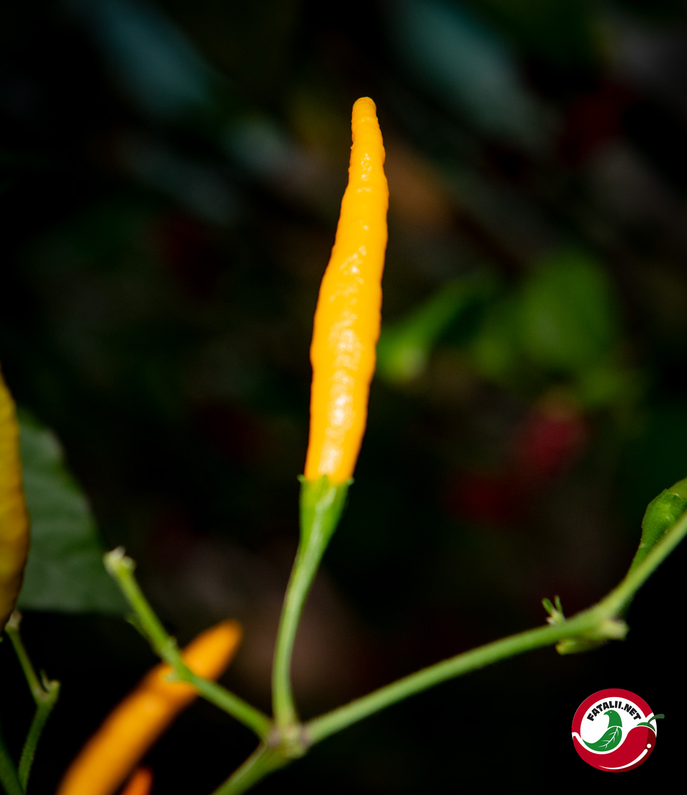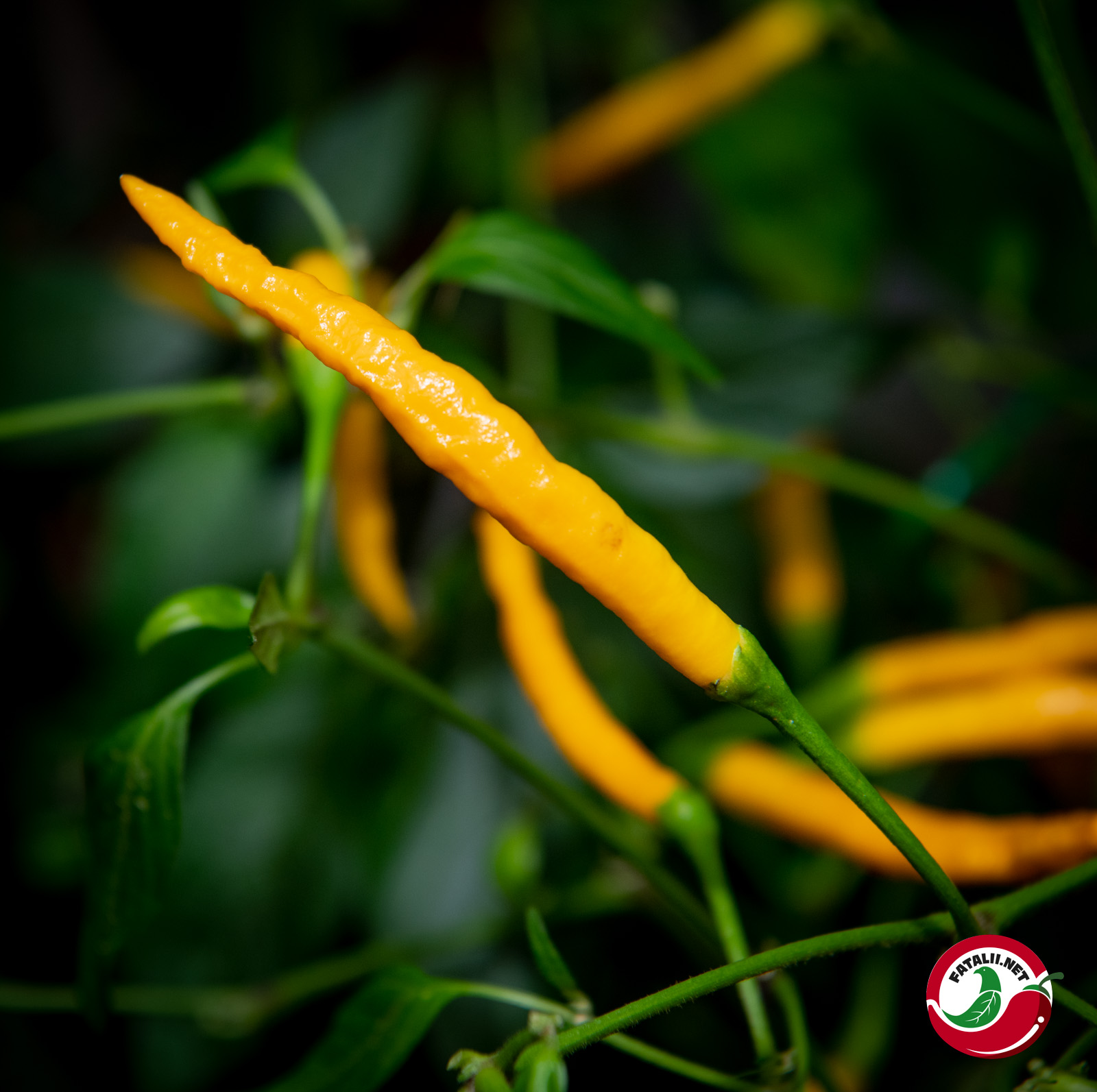 Very hot Thai-type chili pepper! Super prolific plant will give a great amount of beautiful yellow-orange pods which are great to to be used fresh or dried or with chili oil.