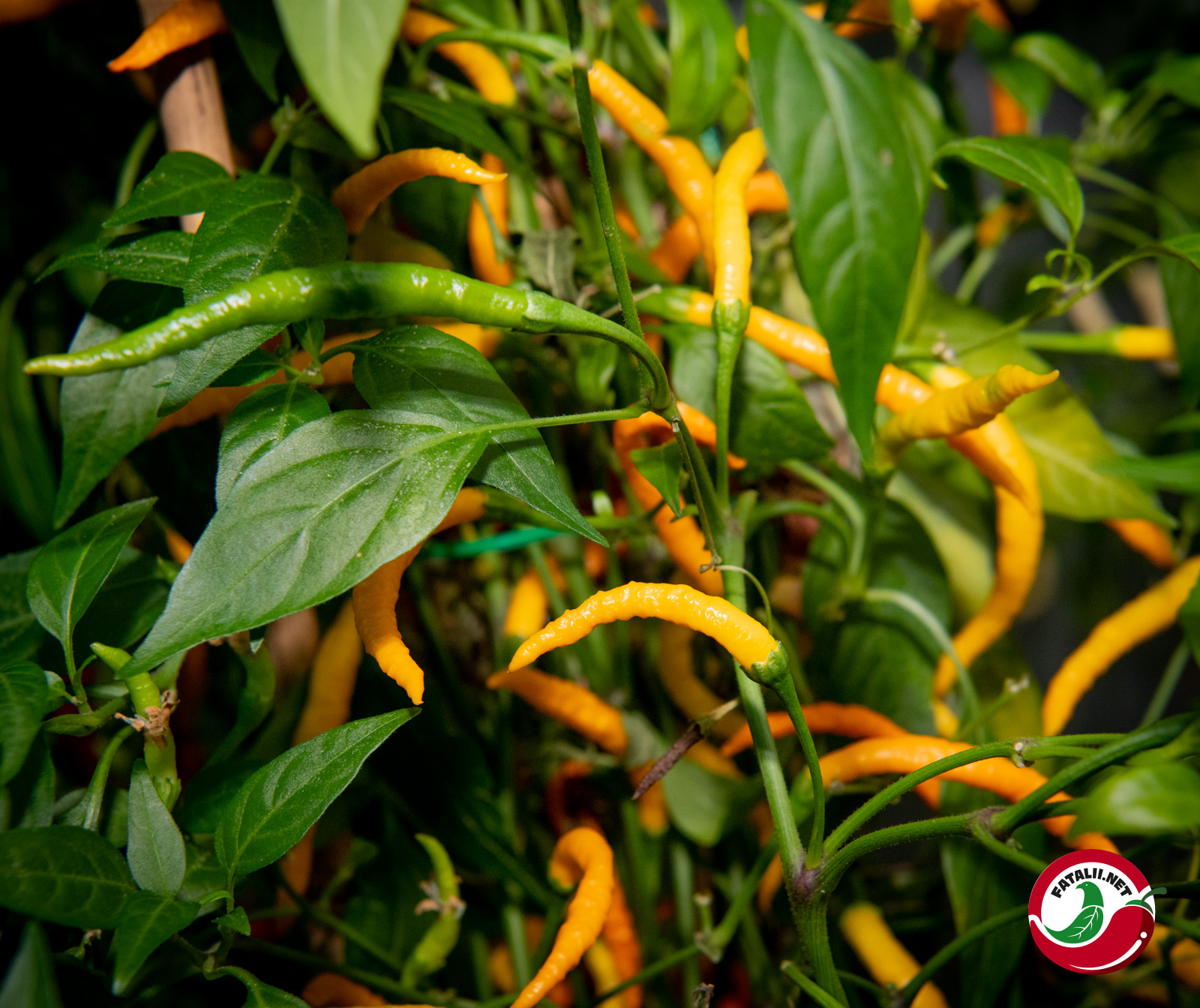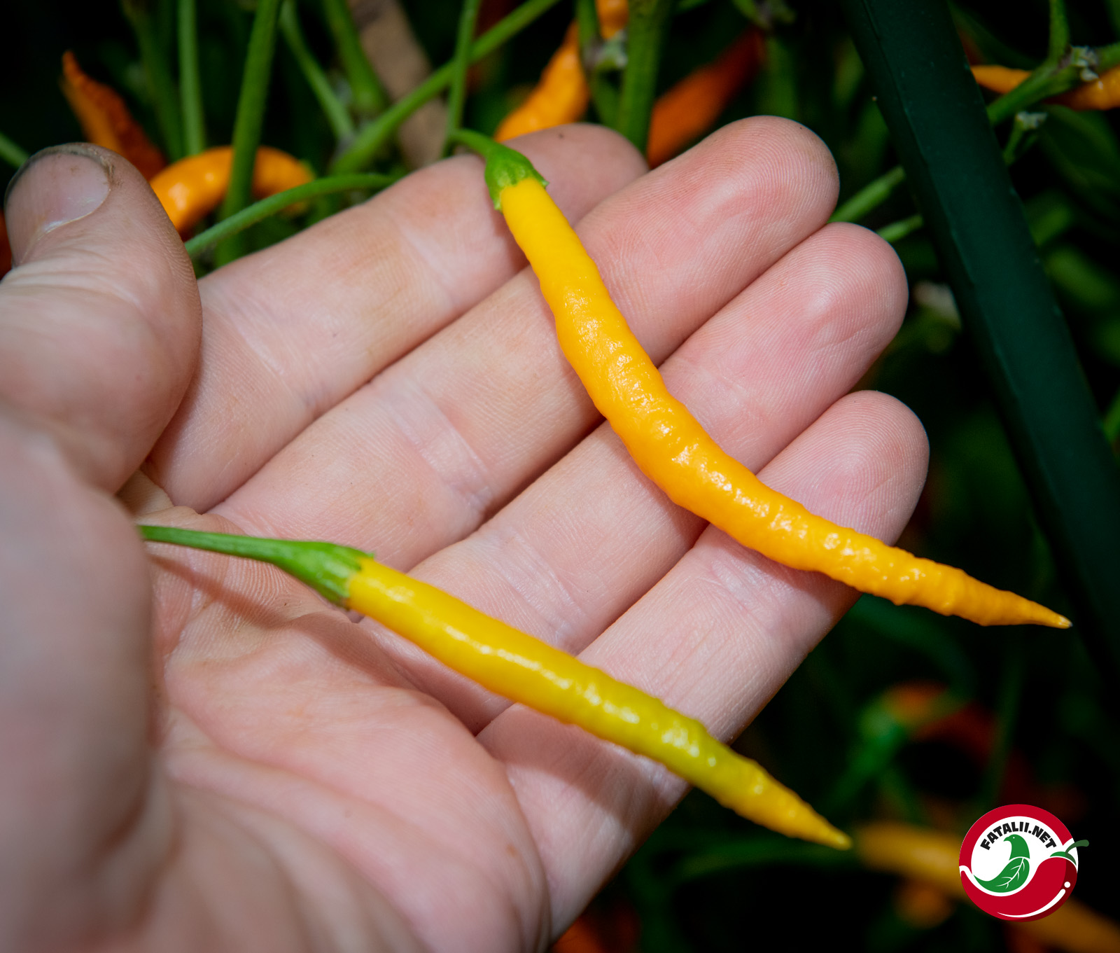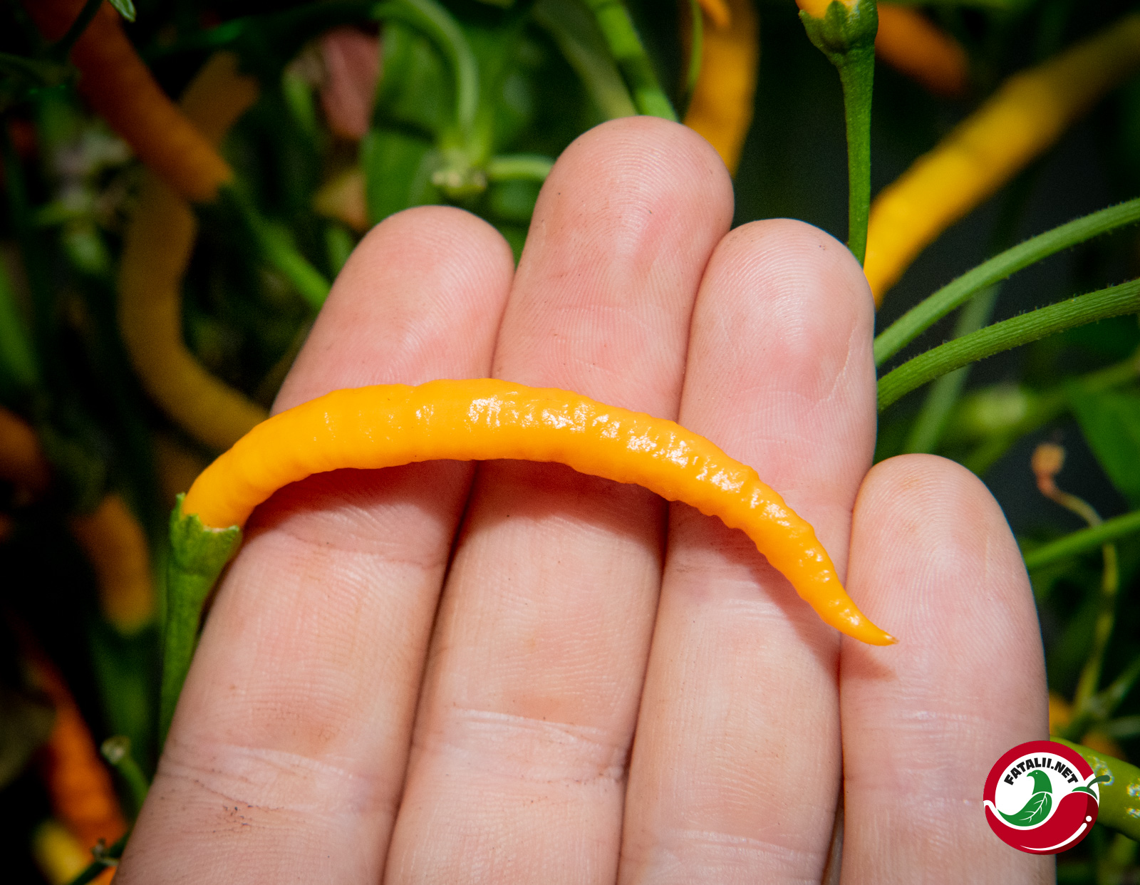 Very hot Thai-type chili pepper! Super prolific plant will give a great amount of beautiful yellow-orange pods which are great to to be used fresh or dried or with chili oil.